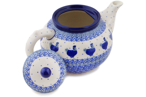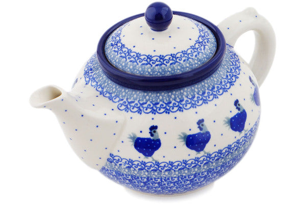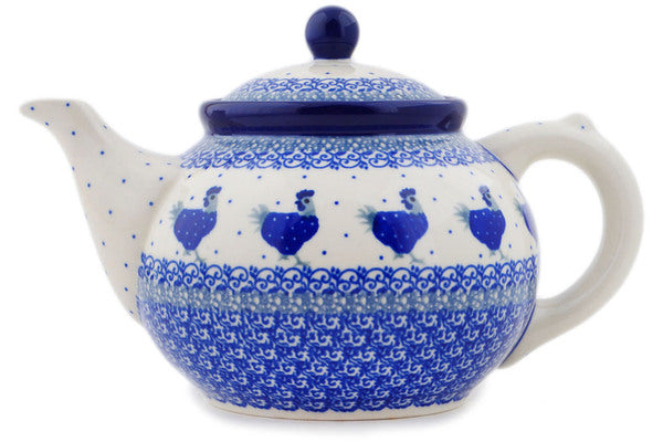 This Cobalt Hen 5 cups Tea or Coffee Pot was handmade and hand decorated in Boleslawiec, Poland by skilled artisans according to old traditional methods. This Polish stoneware is microwave, dishwasher, freezer, and oven safe up to 480°F. It does not contain lead or cadmium. It is part of the Cobalt Hen Collection.