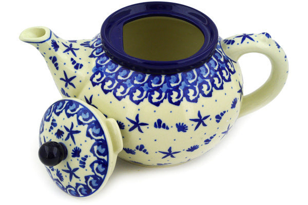 This Seaside Wonder 5 cups Tea or Coffee Pot was handmade and hand decorated in Boleslawiec, Poland by skilled artisans according to old traditional methods. This Polish stoneware is microwave, dishwasher, freezer, and oven safe up to 480°F. It does not contain lead or cadmium. It is part of the Seaside Wonder Collection.