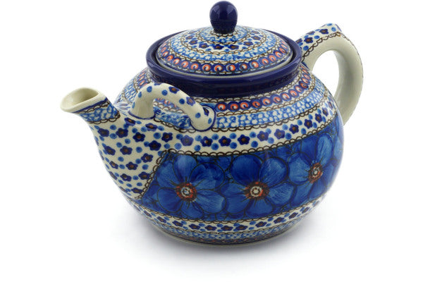 This Cobalt Poppies 7 cups Tea or Coffee Pot was handmade and hand decorated in Boleslawiec, Poland by skilled artisans according to old traditional methods. This is a Polish pottery Signature Unikat, which means that it has been hand painted with both sponges and brushes and it is signed by the artist who painted it. Unikat pieces are the most intricate works of art. Larger Unikat items take hours of very careful work to finish. This Polish stoneware is microwave, dishwasher, freezer, and oven safe up to 480°F. It does not contain lead or cadmium. It is part of the Cobalt Poppies Collection.
