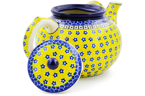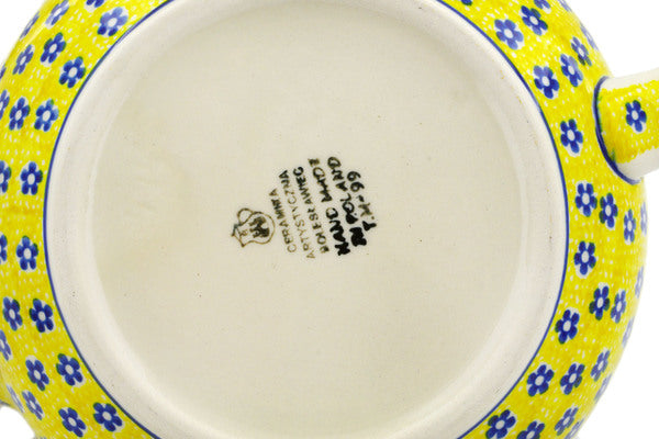 This Sunburst Daisies 7 cups Tea or Coffee Pot was handmade and hand decorated in Boleslawiec, Poland by skilled artisans according to old traditional methods. This Polish stoneware is microwave, dishwasher, freezer, and oven safe up to 480°F. It does not contain lead or cadmium. It is part of the Sunburst Daisies Collection.