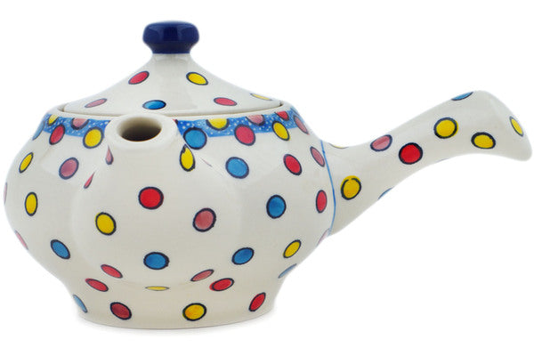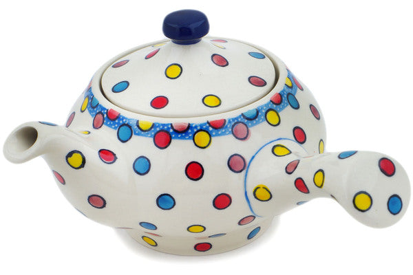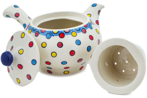 This Gumball Machine 15 oz Tea Pot with Sifter was handmade and hand decorated in Boleslawiec, Poland by skilled artisans according to old traditional methods. This is a Polish pottery Signature Unikat, which means that it has been hand painted with both sponges and brushes and it is signed by the artist who painted it. Unikat pieces are the most intricate works of art. Larger Unikat items take hours of very careful work to finish. This Polish stoneware is microwave, dishwasher, freezer, and oven safe up to 480°F. It does not contain lead or cadmium. It is part of the Gumball Machine Collection.