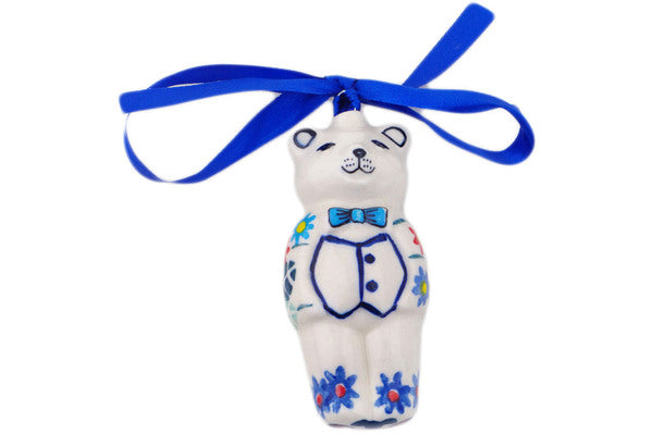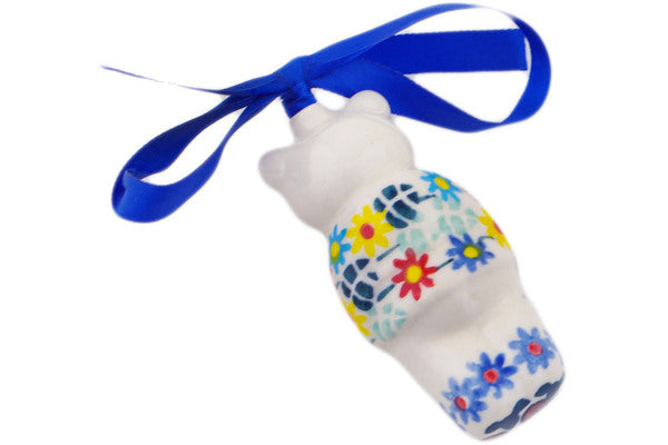 This Primary Spring 4" Teddy Bear Ornament was handmade and hand decorated in Boleslawiec, Poland by skilled artisans according to old traditional methods. This is a Polish pottery Signature Unikat, which means that it has been hand painted with both sponges and brushes and it is signed by the artist who painted it. Unikat pieces are the most intricate works of art. Larger Unikat items take hours of very careful work to finish. This Polish stoneware is microwave, dishwasher, freezer, and oven safe up to 480°F. It does not contain lead or cadmium. It is part of the Primary Spring Collection.