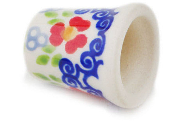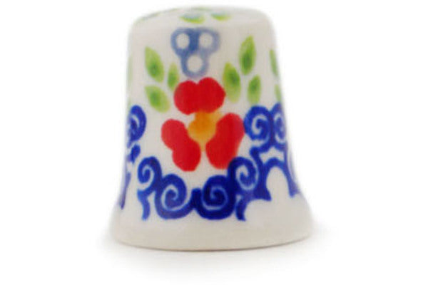 This Red Chains 1" Thimble was handmade and hand decorated in Boleslawiec, Poland by skilled artisans according to old traditional methods. This is a Polish pottery Signature Unikat, which means that it has been hand painted with both sponges and brushes and it is signed by the artist who painted it. Unikat pieces are the most intricate works of art. Larger Unikat items take hours of very careful work to finish. This Polish stoneware is microwave, dishwasher, freezer, and oven safe up to 480°F. It does not contain lead or cadmium. It is part of the Red Chains Collection.