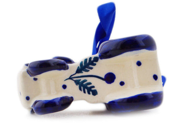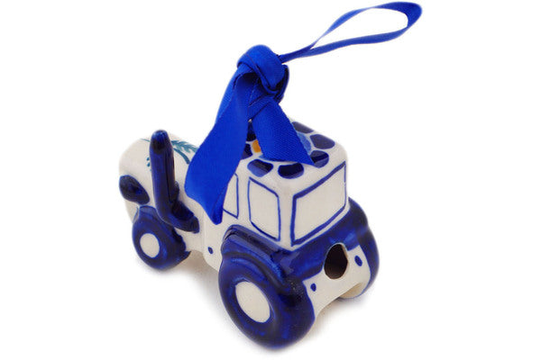 This Orange And Blue Flower 3" Tractor Ornament was handmade and hand decorated in Boleslawiec, Poland by skilled artisans according to old traditional methods. This Polish stoneware is microwave, dishwasher, freezer, and oven safe up to 480°F. It does not contain lead or cadmium. It is part of the Orange And Blue Flower Collection.
