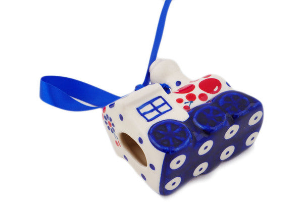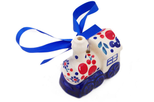 This Burst Of Berries 2" Train Ornament was handmade and hand decorated in Boleslawiec, Poland by skilled artisans according to old traditional methods. This Polish stoneware is microwave, dishwasher, freezer, and oven safe up to 480°F. It does not contain lead or cadmium. It is part of the Burst Of Berries Collection.