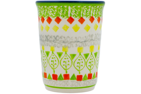 This Leafy Sunrise 10 oz Tumbler was handmade and hand decorated in Boleslawiec, Poland by skilled artisans according to old traditional methods. This Polish stoneware is microwave, dishwasher, freezer, and oven safe up to 480°F. It does not contain lead or cadmium. It is part of the Leafy Sunrise Collection.