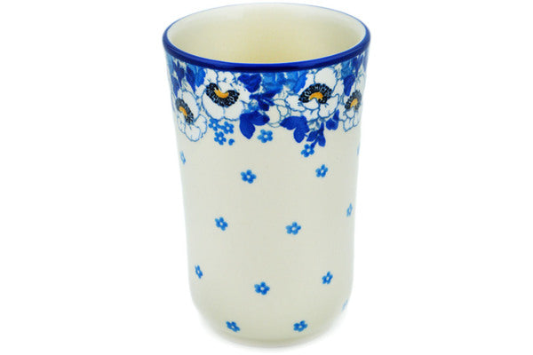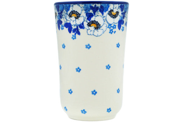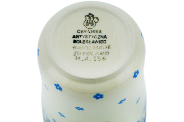 This Blue Spring 15 oz Tumbler was handmade and hand decorated in Boleslawiec, Poland by skilled artisans according to old traditional methods. This Polish stoneware is microwave, dishwasher, freezer, and oven safe up to 480°F. It does not contain lead or cadmium. It is part of the Blue Spring Collection.