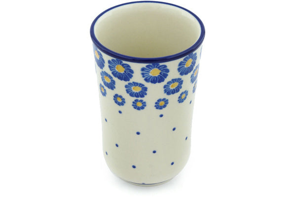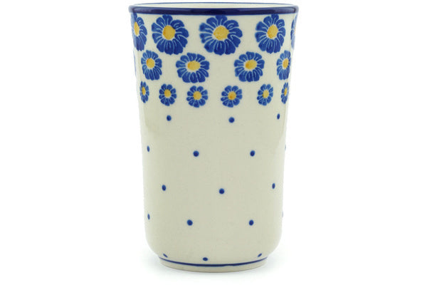 This Blue Zinnia 15 oz Tumbler was handmade and hand decorated in Boleslawiec, Poland by skilled artisans according to old traditional methods. This Polish stoneware is microwave, dishwasher, freezer, and oven safe up to 480°F. It does not contain lead or cadmium. It is part of the Blue Zinnia Collection.