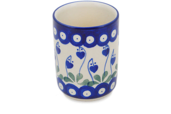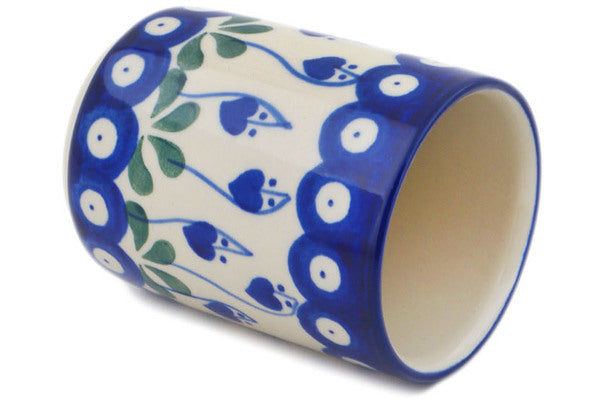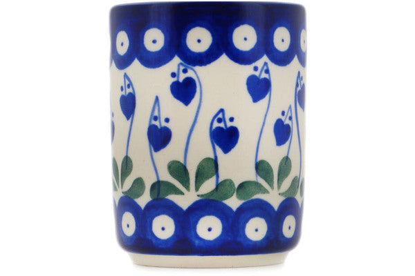 This Bleeding Heart Peacock 6 oz Tumbler was handmade and hand decorated in Boleslawiec, Poland by skilled artisans according to old traditional methods. This Polish stoneware is microwave, dishwasher, freezer, and oven safe up to 480°F. It does not contain lead or cadmium. It is part of the Bleeding Heart Peacock Collection.