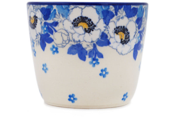 This Blue Spring 6 oz Tumbler was handmade and hand decorated in Boleslawiec, Poland by skilled artisans according to old traditional methods. This Polish stoneware is microwave, dishwasher, freezer, and oven safe up to 480°F. It does not contain lead or cadmium. It is part of the Blue Spring Collection.