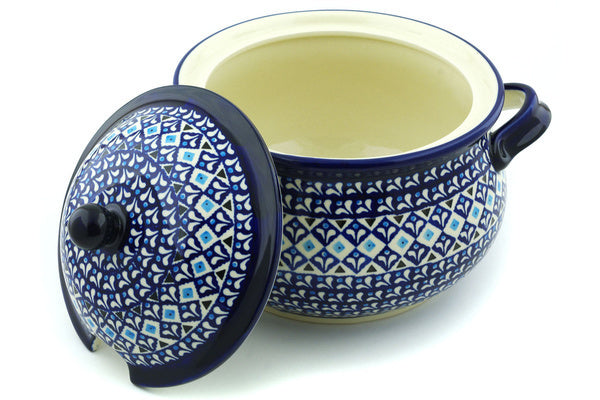 This Blue Diamond Dream 101 oz Tureen was handmade and hand decorated in Boleslawiec, Poland by skilled artisans according to old traditional methods. This Polish stoneware is microwave, dishwasher, freezer, and oven safe up to 480°F. It does not contain lead or cadmium. It is part of the Blue Diamond Dream Collection.