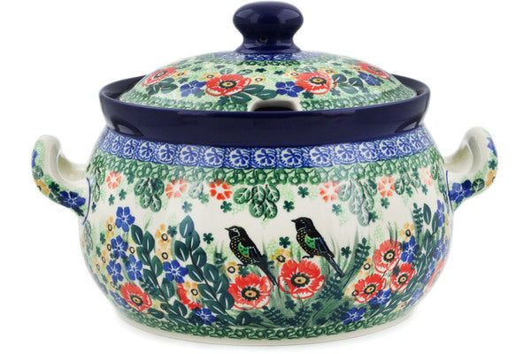 This Window Views 122 oz Tureen was handmade and hand decorated in Boleslawiec, Poland by skilled artisans according to old traditional methods. This is a Polish pottery Signature Unikat, which means that it has been hand painted with both sponges and brushes and it is signed by the artist who painted it. Unikat pieces are the most intricate works of art. Larger Unikat items take hours of very careful work to finish. This Polish stoneware is microwave, dishwasher, freezer, and oven safe up to 480°F. It does not contain lead or cadmium. It is part of the Window Views Collection.