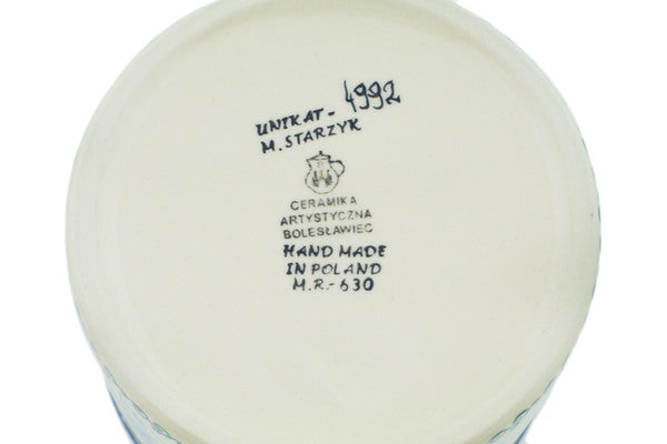 This Forget Me Not 5" Utensil Jar was handmade and hand decorated in Boleslawiec, Poland by skilled artisans according to old traditional methods. This is a Polish pottery Signature Unikat, which means that it has been hand painted with both sponges and brushes and it is signed by the artist who painted it. Unikat pieces are the most intricate works of art. Larger Unikat items take hours of very careful work to finish. This Polish stoneware is microwave, dishwasher, freezer, and oven safe up to 480°F. It does not contain lead or cadmium. It is part of the Forget Me Not Collection.