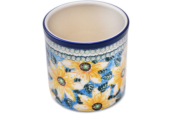 This Black Eyed Susan 6" Utensil Jar was handmade and hand decorated in Boleslawiec, Poland by skilled artisans according to old traditional methods. This is a Polish pottery Signature Unikat, which means that it has been hand painted with both sponges and brushes and it is signed by the artist who painted it. Unikat pieces are the most intricate works of art. Larger Unikat items take hours of very careful work to finish. This Polish stoneware is microwave, dishwasher, freezer, and oven safe up to 480°F. It does not contain lead or cadmium. It is part of the Black Eyed Susan Collection.