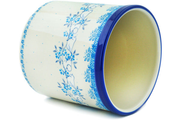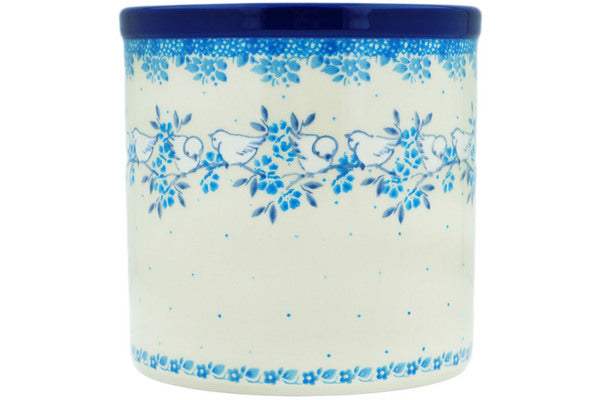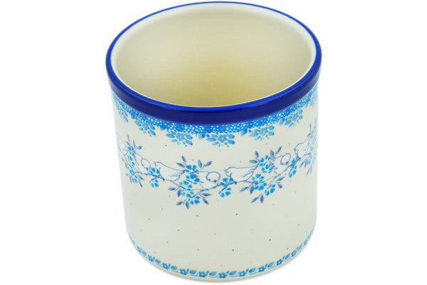 This Happy Doves 6" Utensil Jar was handmade and hand decorated in Boleslawiec, Poland by skilled artisans according to old traditional methods. This Polish stoneware is microwave, dishwasher, freezer, and oven safe up to 480°F. It does not contain lead or cadmium. It is part of the Happy Doves Collection.
