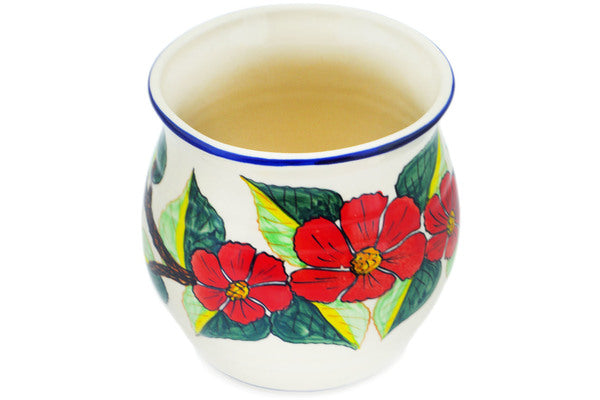 This Poinsettia Paradise 6" Utensil Jar was handmade and hand decorated in Boleslawiec, Poland by skilled artisans according to old traditional methods. This is a Polish pottery Signature Unikat, which means that it has been hand painted with both sponges and brushes and it is signed by the artist who painted it. Unikat pieces are the most intricate works of art. Larger Unikat items take hours of very careful work to finish. This Polish stoneware is microwave, dishwasher, freezer, and oven safe up to 480°F. It does not contain lead or cadmium. It is part of the Poinsettia Paradise Collection.