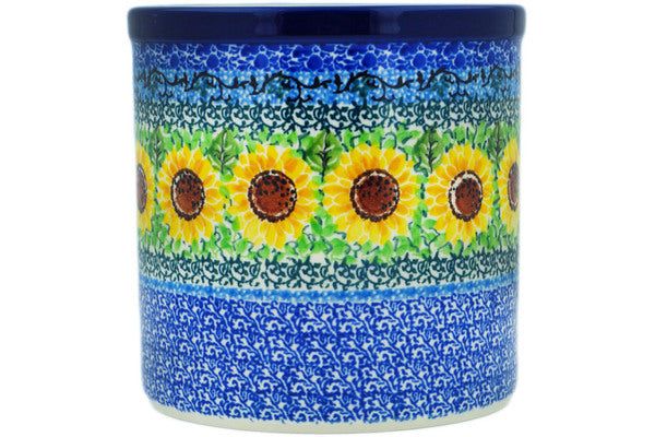 This Summer Sunnies 6" Utensil Jar was handmade and hand decorated in Boleslawiec, Poland by skilled artisans according to old traditional methods. This is a Polish pottery Signature Unikat, which means that it has been hand painted with both sponges and brushes and it is signed by the artist who painted it. Unikat pieces are the most intricate works of art. Larger Unikat items take hours of very careful work to finish. This Polish stoneware is microwave, dishwasher, freezer, and oven safe up to 480°F. It does not contain lead or cadmium. It is part of the Summer Sunnies Collection.