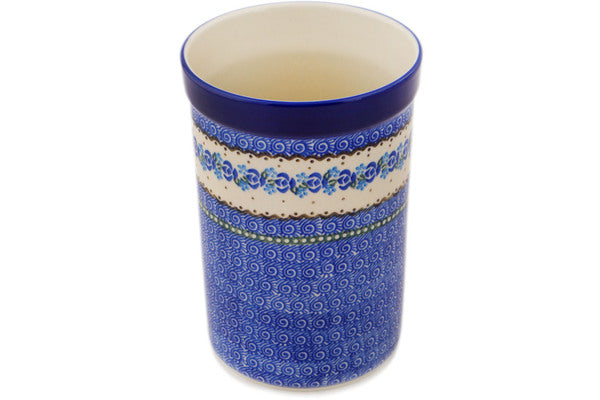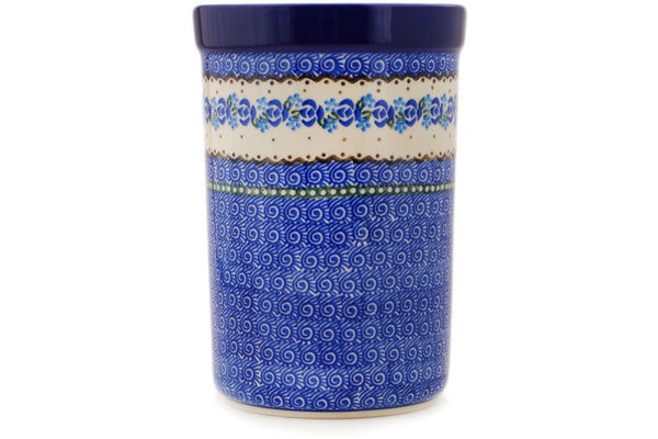 This Blue Bud Sea 8" Utensil Jar was handmade and hand decorated in Boleslawiec, Poland by skilled artisans according to old traditional methods. This Polish stoneware is microwave, dishwasher, freezer, and oven safe up to 480°F. It does not contain lead or cadmium. It is part of the Blue Bud Sea Collection.