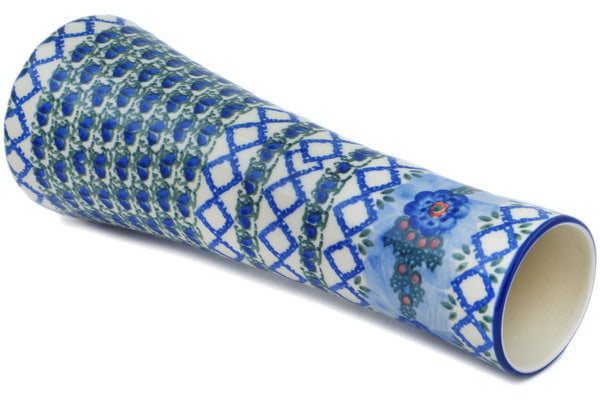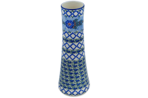 This Latice Daisy 10" Vase was handmade and hand decorated in Boleslawiec, Poland by skilled artisans according to old traditional methods. This is a Polish pottery Signature Unikat, which means that it has been hand painted with both sponges and brushes and it is signed by the artist who painted it. Unikat pieces are the most intricate works of art. Larger Unikat items take hours of very careful work to finish. This Polish stoneware is microwave, dishwasher, freezer, and oven safe up to 480°F. It does not contain lead or cadmium. It is part of the Latice Daisy Collection.