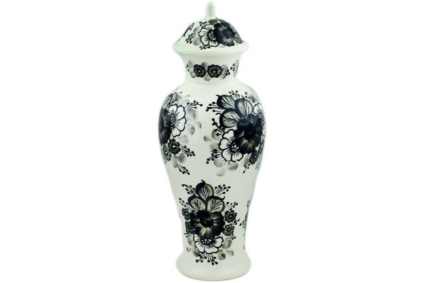 This Black 18" Urn was handmade and hand decorated in Boleslawiec, Poland by skilled artisans according to old traditional methods. This Polish stoneware is microwave, dishwasher, freezer, and oven safe up to 480°F. It does not contain lead or cadmium. It is part of the Black Collection.