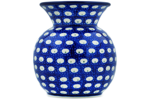 This Stepping Stones 4" Vase was handmade and hand decorated in Boleslawiec, Poland by skilled artisans according to old traditional methods. This Polish stoneware is microwave, dishwasher, freezer, and oven safe up to 480°F. It does not contain lead or cadmium. It is part of the Stepping Stones Collection.