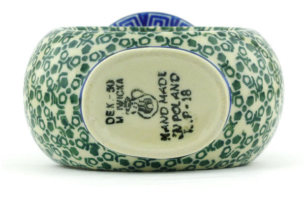 This Grecian Sea 5" Vase was handmade and hand decorated in Boleslawiec, Poland by skilled artisans according to old traditional methods. This Polish stoneware is microwave, dishwasher, freezer, and oven safe up to 480°F. It does not contain lead or cadmium. It is part of the Grecian Sea Collection.