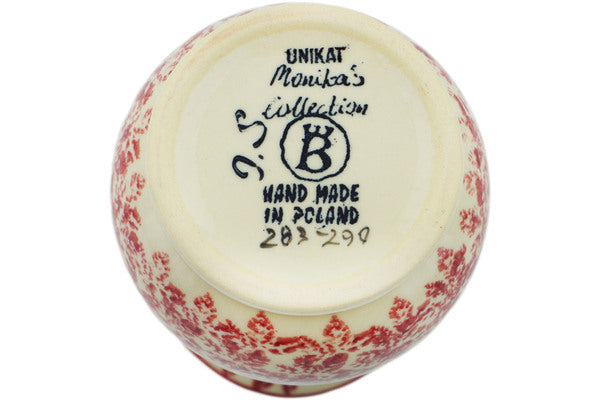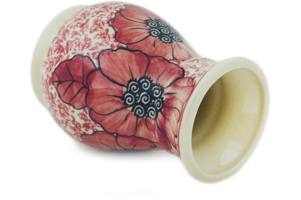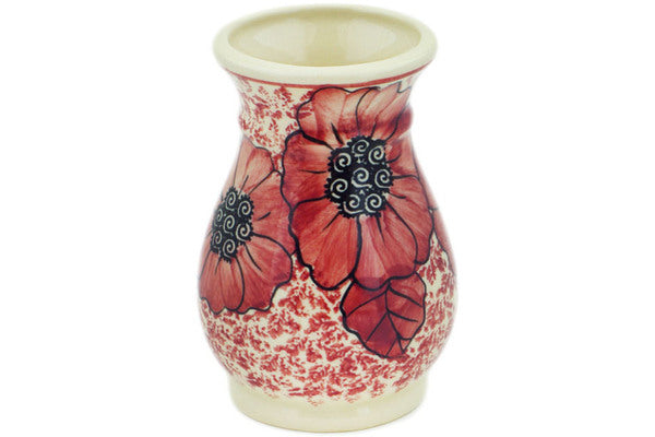 This Sugar Plum Poppies 5" Vase was handmade and hand decorated in Boleslawiec, Poland by skilled artisans according to old traditional methods. This is a Polish pottery Signature Unikat, which means that it has been hand painted with both sponges and brushes and it is signed by the artist who painted it. Unikat pieces are the most intricate works of art. Larger Unikat items take hours of very careful work to finish. This Polish stoneware is microwave, dishwasher, freezer, and oven safe up to 480°F. It does not contain lead or cadmium. It is part of the Sugar Plum Poppies Collection.