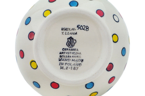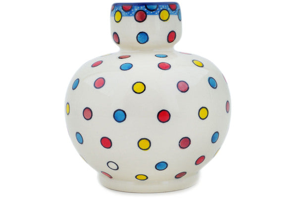 This Gumball Machine 6" Vase was handmade and hand decorated in Boleslawiec, Poland by skilled artisans according to old traditional methods. This is a Polish pottery Signature Unikat, which means that it has been hand painted with both sponges and brushes and it is signed by the artist who painted it. Unikat pieces are the most intricate works of art. Larger Unikat items take hours of very careful work to finish. This Polish stoneware is microwave, dishwasher, freezer, and oven safe up to 480°F. It does not contain lead or cadmium. It is part of the Gumball Machine Collection.