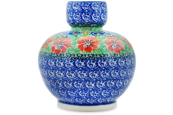 This Ring Of Flowers 6" Vase was handmade and hand decorated in Boleslawiec, Poland by skilled artisans according to old traditional methods. This is a Polish pottery Signature Unikat, which means that it has been hand painted with both sponges and brushes and it is signed by the artist who painted it. Unikat pieces are the most intricate works of art. Larger Unikat items take hours of very careful work to finish. This Polish stoneware is microwave, dishwasher, freezer, and oven safe up to 480°F. It does not contain lead or cadmium. It is part of the Ring Of Flowers Collection.