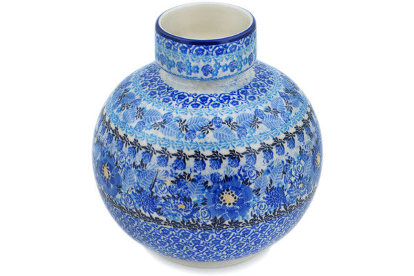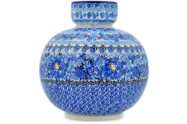 This Fields Of Blue 7" Vase was handmade and hand decorated in Boleslawiec, Poland by skilled artisans according to old traditional methods. This is a Polish pottery Signature Unikat, which means that it has been hand painted with both sponges and brushes and it is signed by the artist who painted it. Unikat pieces are the most intricate works of art. Larger Unikat items take hours of very careful work to finish. This Polish stoneware is microwave, dishwasher, freezer, and oven safe up to 480°F. It does not contain lead or cadmium. It is part of the Fields Of Blue Collection.