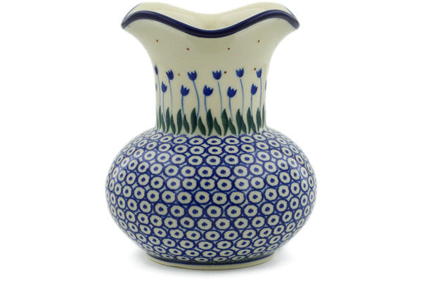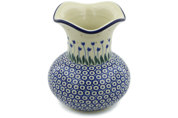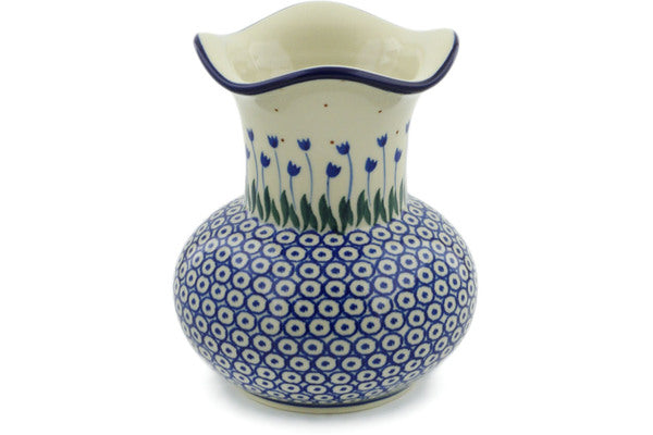This Water Tulip 7" Vase was handmade and hand decorated in Boleslawiec, Poland by skilled artisans according to old traditional methods. This Polish stoneware is microwave, dishwasher, freezer, and oven safe up to 480°F. It does not contain lead or cadmium. It is part of the Water Tulip Collection.