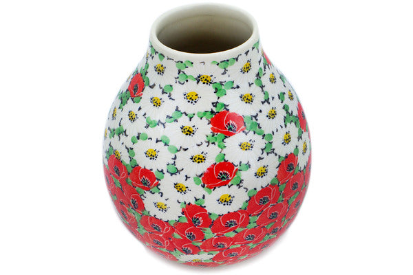 This Spring Blossom Harmony 8" Vase was handmade and hand decorated in Boleslawiec, Poland by skilled artisans according to old traditional methods. This is a Polish pottery Signature Unikat, which means that it has been hand painted with both sponges and brushes and it is signed by the artist who painted it. Unikat pieces are the most intricate works of art. Larger Unikat items take hours of very careful work to finish. This Polish stoneware is microwave, dishwasher, freezer, and oven safe up to 480°F. It does not contain lead or cadmium. It is part of the Spring Blossom Harmony Collection.