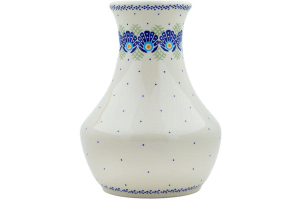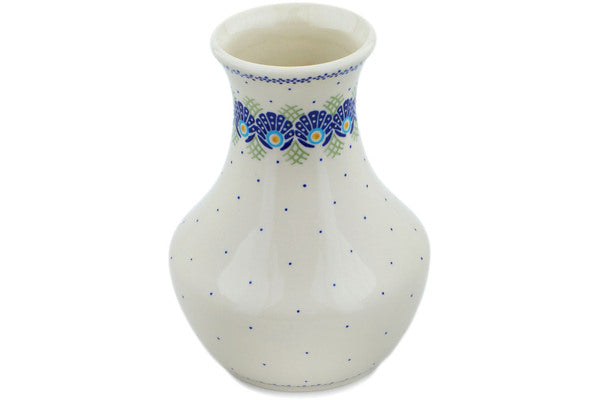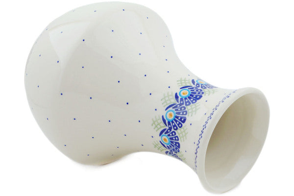 This Tail Feathers 8" Vase was handmade and hand decorated in Boleslawiec, Poland by skilled artisans according to old traditional methods. This Polish stoneware is microwave, dishwasher, freezer, and oven safe up to 480°F. It does not contain lead or cadmium. It is part of the Tail Feathers Collection.