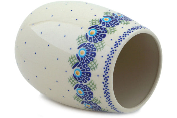 This Tail Feathers 8" Vase was handmade and hand decorated in Boleslawiec, Poland by skilled artisans according to old traditional methods. This Polish stoneware is microwave, dishwasher, freezer, and oven safe up to 480°F. It does not contain lead or cadmium. It is part of the Tail Feathers Collection.