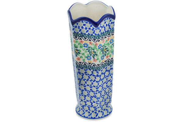 This Black Heart Garden 9" Vase was handmade and hand decorated in Boleslawiec, Poland by skilled artisans according to old traditional methods. This is a Polish pottery Signature Unikat, which means that it has been hand painted with both sponges and brushes and it is signed by the artist who painted it. Unikat pieces are the most intricate works of art. Larger Unikat items take hours of very careful work to finish. This Polish stoneware is microwave, dishwasher, freezer, and oven safe up to 480°F. It does not contain lead or cadmium. It is part of the Black Heart Garden Collection.