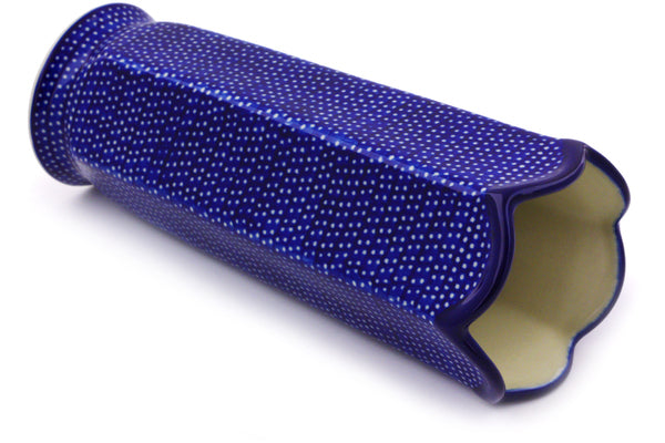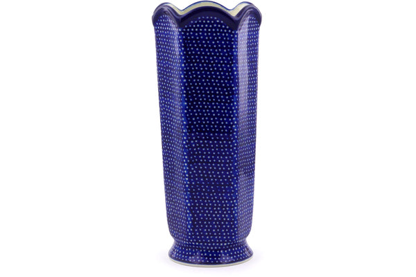 This Starry Night 9" Vase was handmade and hand decorated in Boleslawiec, Poland by skilled artisans according to old traditional methods. This is a Polish pottery Signature Unikat, which means that it has been hand painted with both sponges and brushes and it is signed by the artist who painted it. Unikat pieces are the most intricate works of art. Larger Unikat items take hours of very careful work to finish. This Polish stoneware is microwave, dishwasher, freezer, and oven safe up to 480°F. It does not contain lead or cadmium. It is part of the Starry Night Collection.