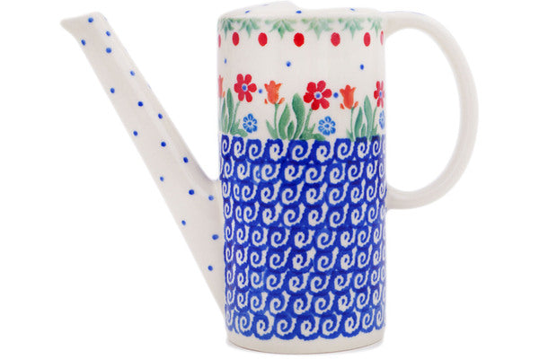 This Babcia's Garden 14 oz Watering Can was handmade and hand decorated in Boleslawiec, Poland by skilled artisans according to old traditional methods. This Polish stoneware is microwave, dishwasher, freezer, and oven safe up to 480°F. It does not contain lead or cadmium. It is part of the Babcia's Garden Collection.