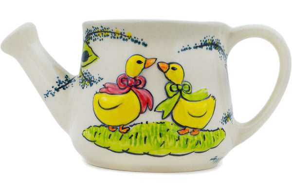 This Hawaii Sunshine 22 oz Watering Can was handmade and hand decorated in Boleslawiec, Poland by skilled artisans according to old traditional methods. This is a Polish pottery Signature Unikat, which means that it has been hand painted with both sponges and brushes and it is signed by the artist who painted it. Unikat pieces are the most intricate works of art. Larger Unikat items take hours of very careful work to finish. This Polish stoneware is microwave, dishwasher, freezer, and oven safe up to 480°F. It does not contain lead or cadmium. It is part of the Hawaii Sunshine Collection.