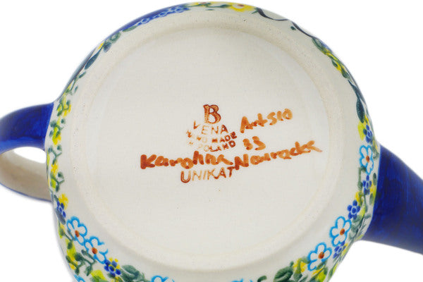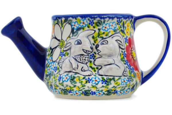 This Magical Spring 23 oz Watering Can was handmade and hand decorated in Boleslawiec, Poland by skilled artisans according to old traditional methods. This is a Polish pottery Signature Unikat, which means that it has been hand painted with both sponges and brushes and it is signed by the artist who painted it. Unikat pieces are the most intricate works of art. Larger Unikat items take hours of very careful work to finish. This Polish stoneware is microwave, dishwasher, freezer, and oven safe up to 480°F. It does not contain lead or cadmium. It is part of the Magical Spring Collection.