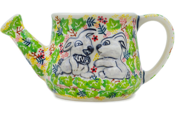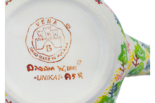 This Wild Peonies 23 oz Watering Can was handmade and hand decorated in Boleslawiec, Poland by skilled artisans according to old traditional methods. This is a Polish pottery Signature Unikat, which means that it has been hand painted with both sponges and brushes and it is signed by the artist who painted it. Unikat pieces are the most intricate works of art. Larger Unikat items take hours of very careful work to finish. This Polish stoneware is microwave, dishwasher, freezer, and oven safe up to 480°F. It does not contain lead or cadmium. It is part of the Wild Peonies Collection.
