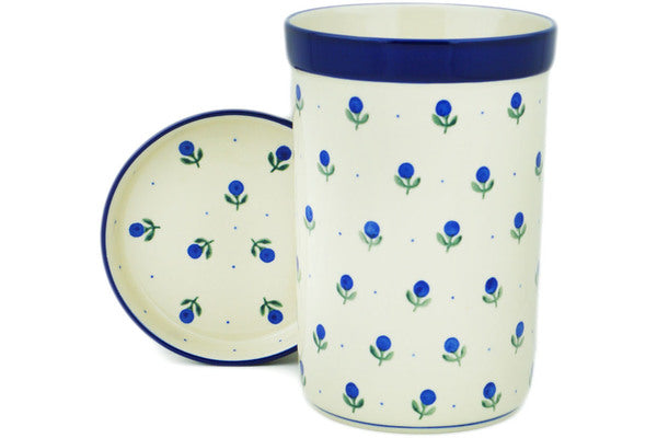 This Blue Buds 8" Wine Chill with Saucer was handmade and hand decorated in Boleslawiec, Poland by skilled artisans according to old traditional methods. This Polish stoneware is microwave, dishwasher, freezer, and oven safe up to 480°F. It does not contain lead or cadmium. It is part of the Blue Buds Collection.